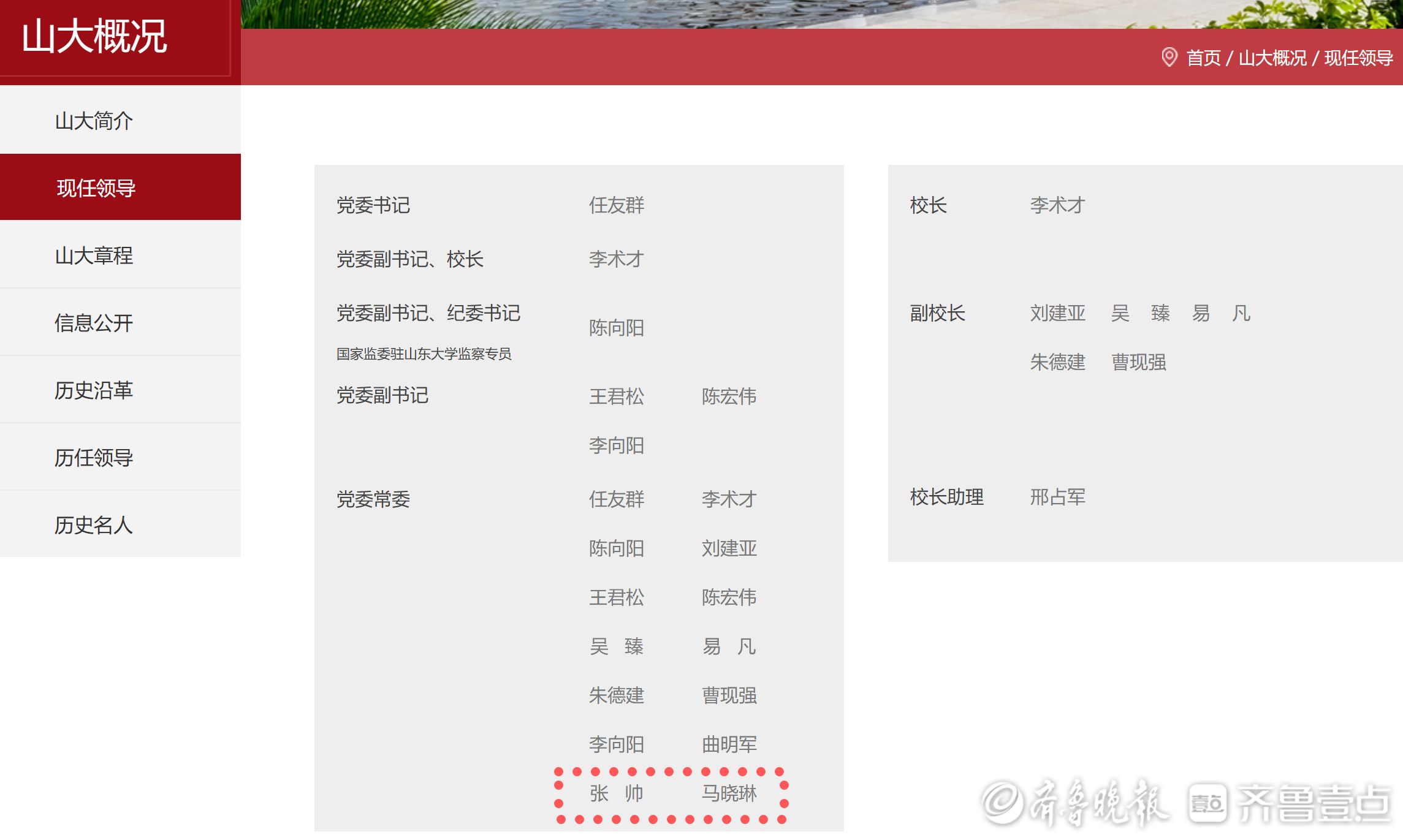 6月29日下午,在圆满完成各项议程和任务之后,山东大学第十五次党员代表大会在中心校区闭幕。记者注意到,此次党代会后,山东大学新增两位“75后”党委常委,山东大学官方网站“现任领导”一栏近日已完成更新。更新后信息显示,张帅、马晓琳2024年6月任山东大学党委常委。