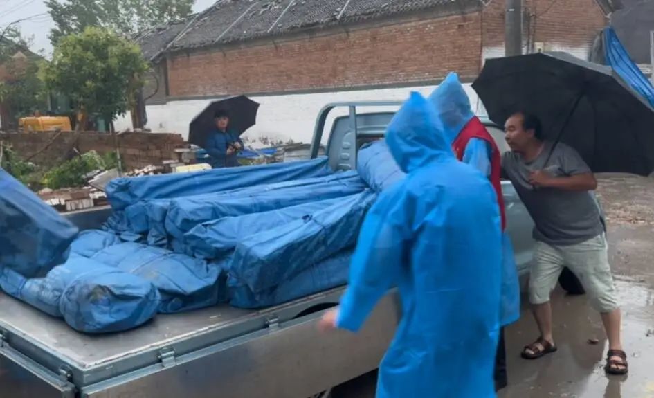 由于村内停水停电,沙窝镇政府组织志愿者逐户送去安全饮用水和食物等生活必需品,解决群众基本生活保障问题。