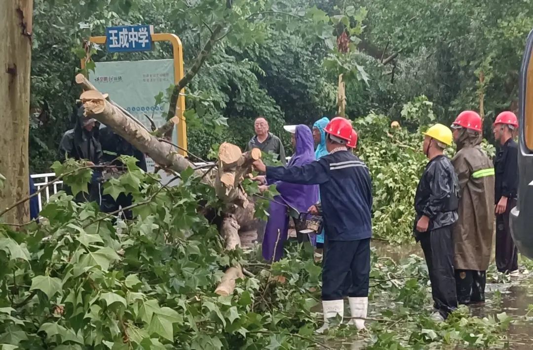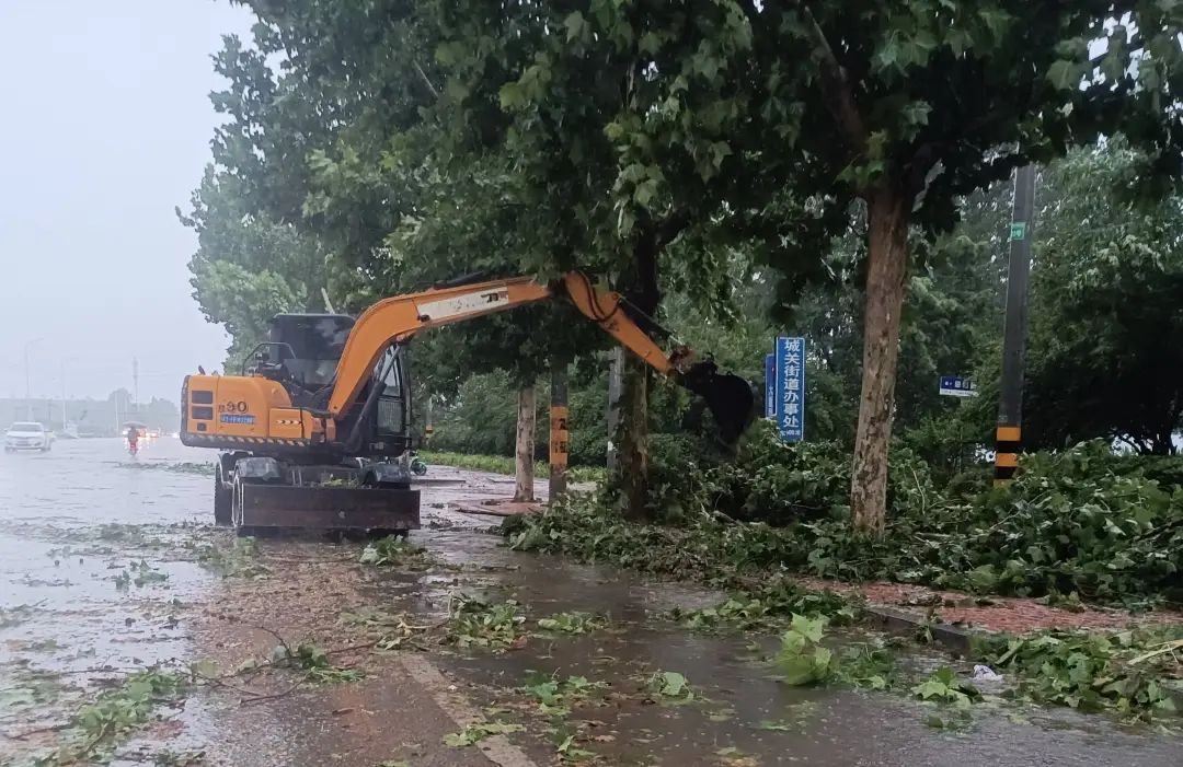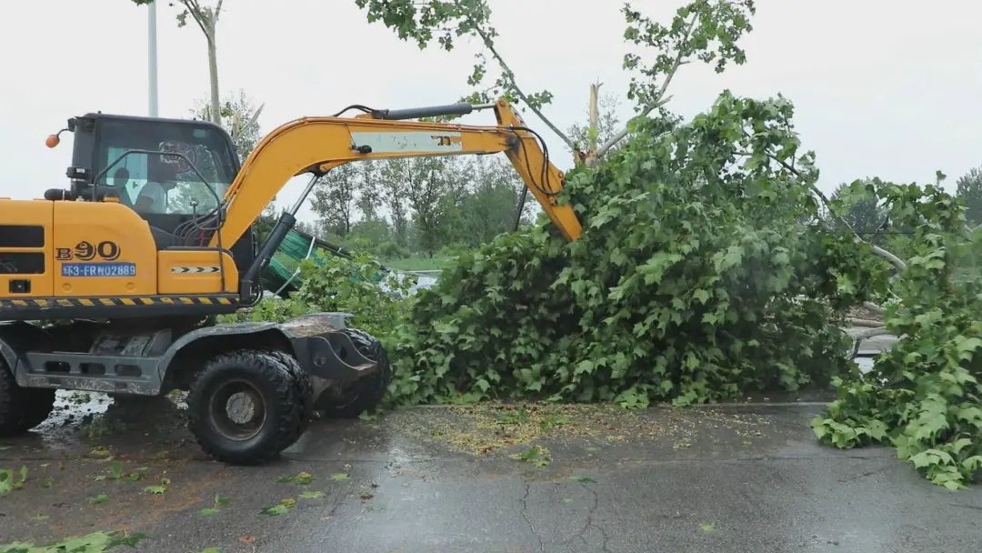 东明县综合行政执法局、公安局交警大队、供电、园林绿化等有关部门到达现场后,及时采取果断措施,现场指挥交通,出动抢险机械迅速开展道路清障抢通作业,并清除路边歪倒的建筑、树木以及被砸车辆,确保以最快速度恢复道路畅通,全力保障群众干净、整洁、安全、有序的出行环境。沙窝镇应急救援志愿服务队和退役军人志愿服务队迎难而上,组织50余名志愿者帮助八里寺村群众安置转移。