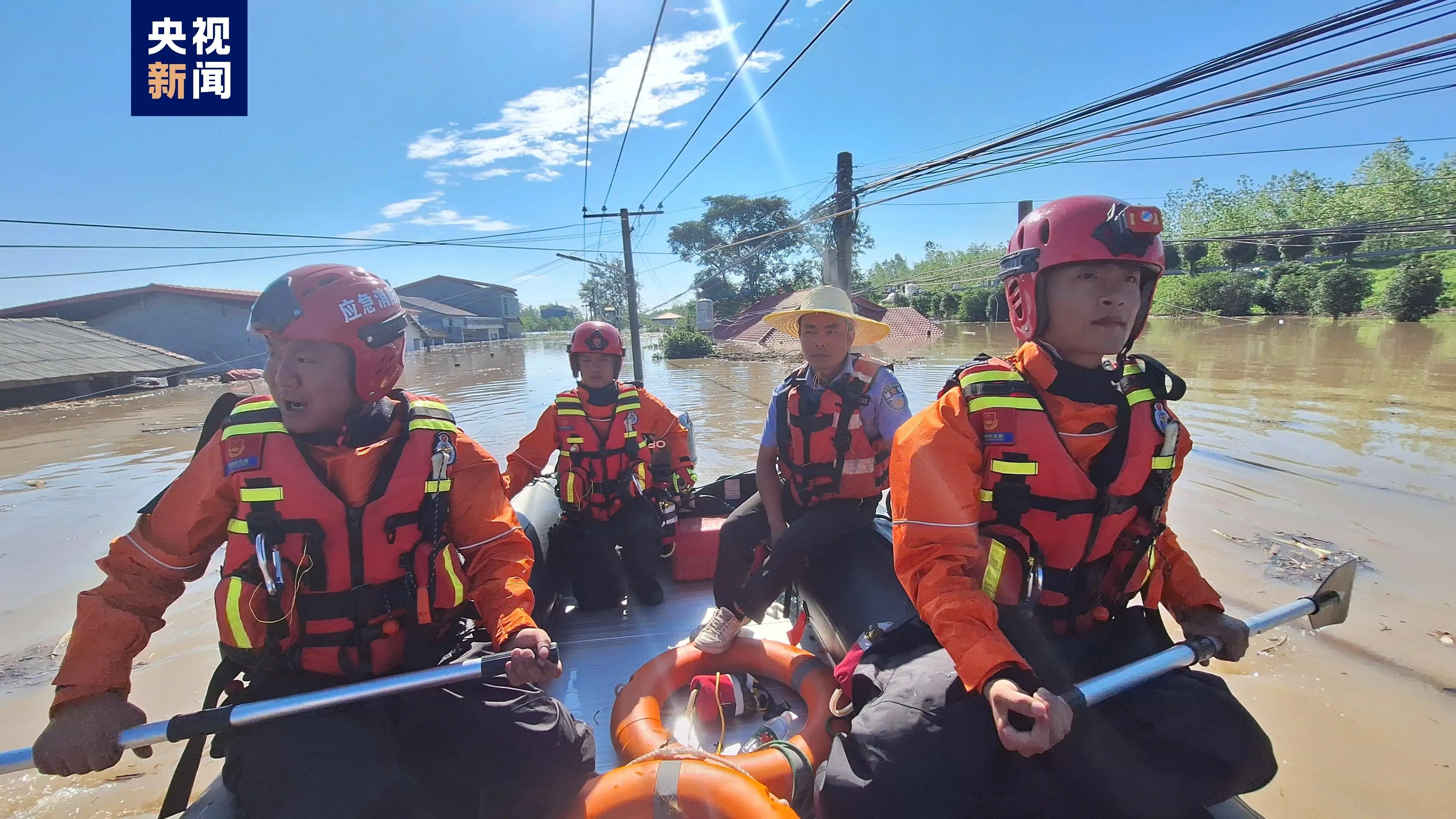 自湖南岳阳洞庭湖堤防出现决口险情以来,增援当地的消防人员持续转移周边群众。7月6日上午7时30分,株洲支队8人乘坐两艘皮划艇在团西村村委委员的带领下,对照着村民名单,挨家挨户进行排查。