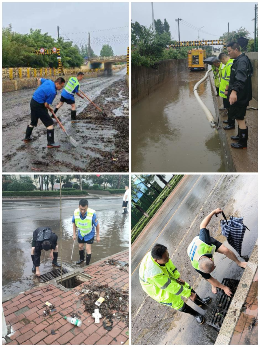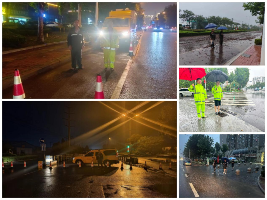 防汛应急队伍全员在岗在位,以“迅”应“汛”,冒雨“战斗”。工作人员在城区7条重要路段的120个排水口处,插上红色警示旗,及时清掏、清运下水道口的杂物,确保低洼区域排水通畅。尤其在人民大街与孝友路、凤仪路与顺达路、巩村路沂河一英里、陶然东路与解放东路、凤凰大街与陶然东路5处易积水路段,凤凰大街铁路桥下穿,李公河西支铁路下穿处安排专人值守,提醒市民绕道而行,保障出行安全。7月7日夜间,共出动150余名应急抢险队员,24小时不停歇巡查并驻守一线易积水点,随时根据雨情和统一调度,切实筑牢汛期“安全防线”。