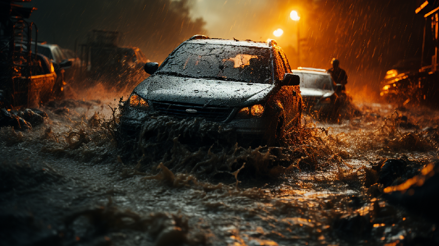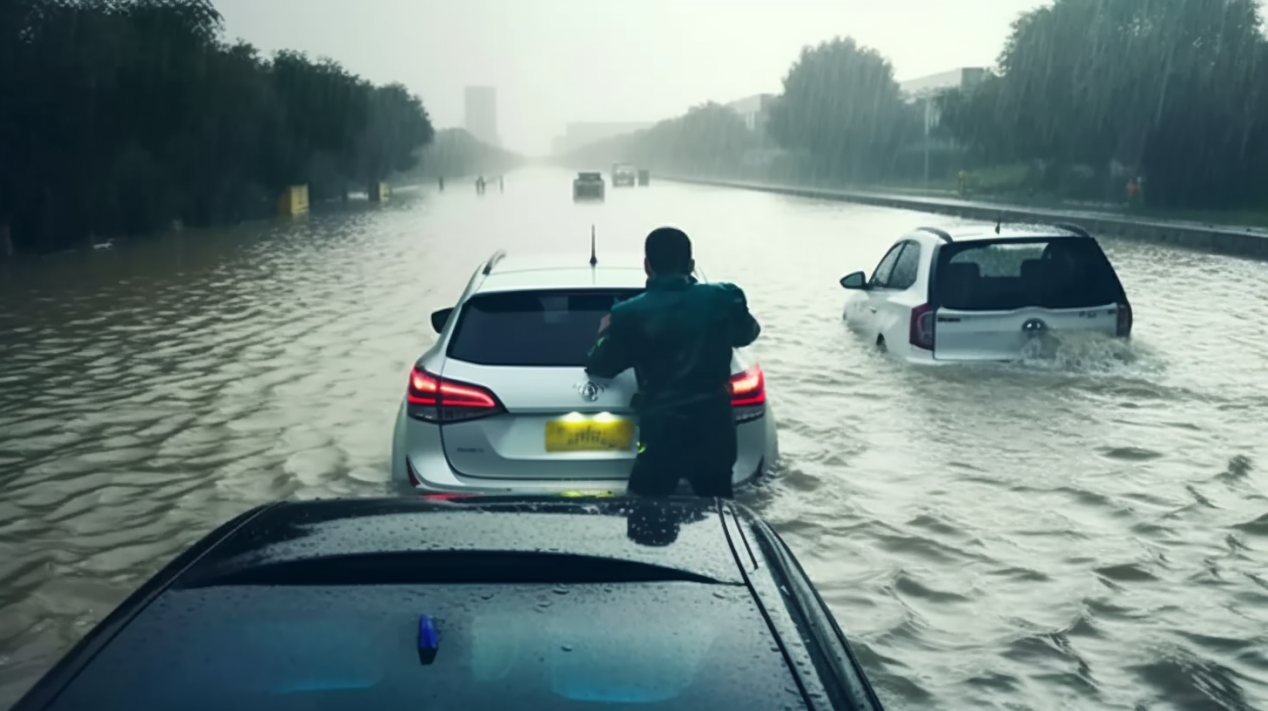 涉水时要打开大灯和双闪灯,要注意与前面车辆保持较大车距,以防涌浪及带起的水花进入发动机,造成车辆熄火。行车应减速慢行,避免驶入积水区、地势低洼区。