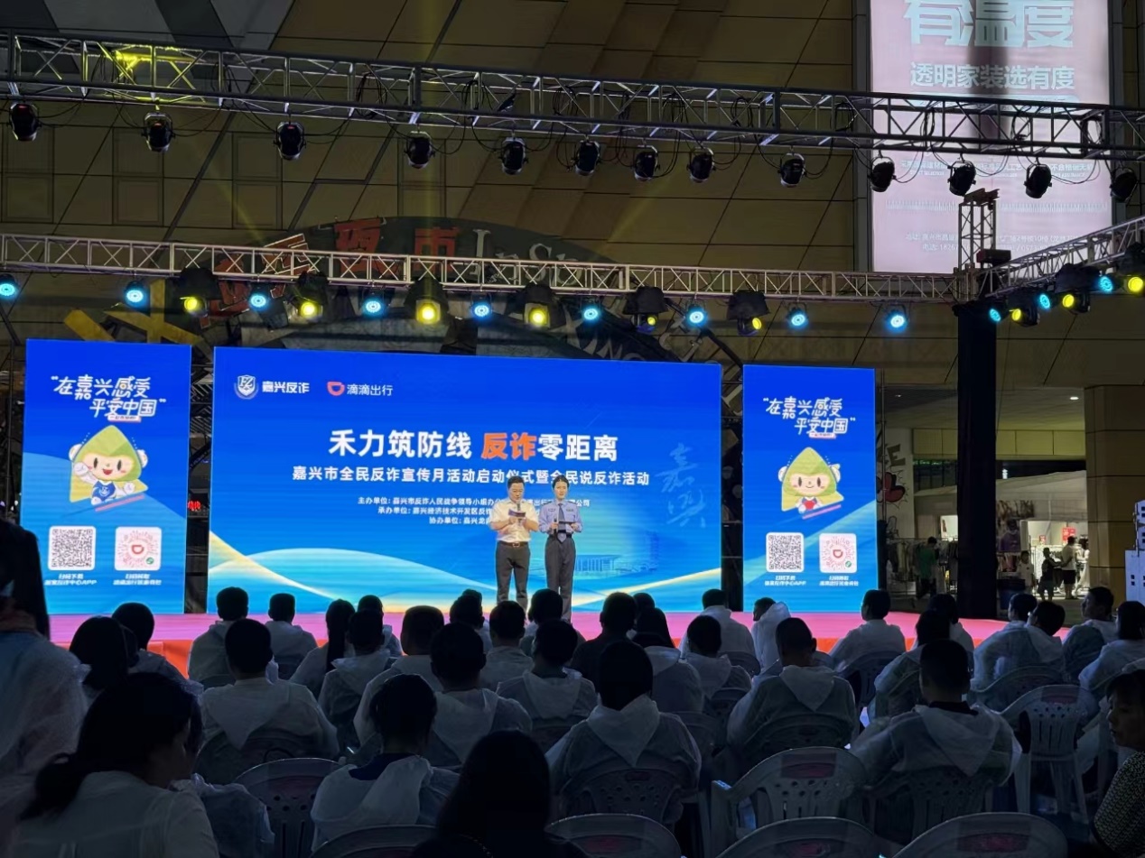 在嘉兴,滴滴出行联合嘉兴市反诈办在龙鼎万达中庭西广场举行“禾力筑防线 反诈零距离”——嘉兴市全民反诈宣传月活动启动仪式暨全民说反诈活动,嘉兴市公安局相关领导宣读全民反诈倡议。现场通过反诈套圈、反诈连连看、反诈漆扇等各式各样妙趣横生的“反诈小铺”,以及反诈真实案例改编的表演,吸引大量市民参与,现场有趣有料,群众直呼“受用”。