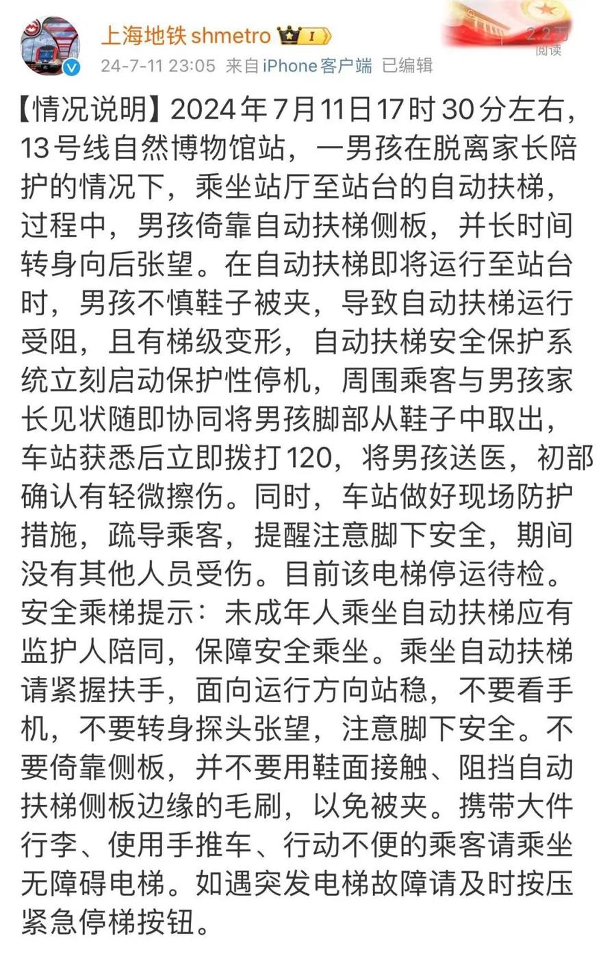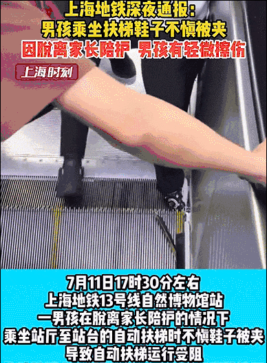 热闻|男童乘扶梯时不慎受伤,上海地铁深夜通报!乘坐自动扶梯时,这些区域要注意