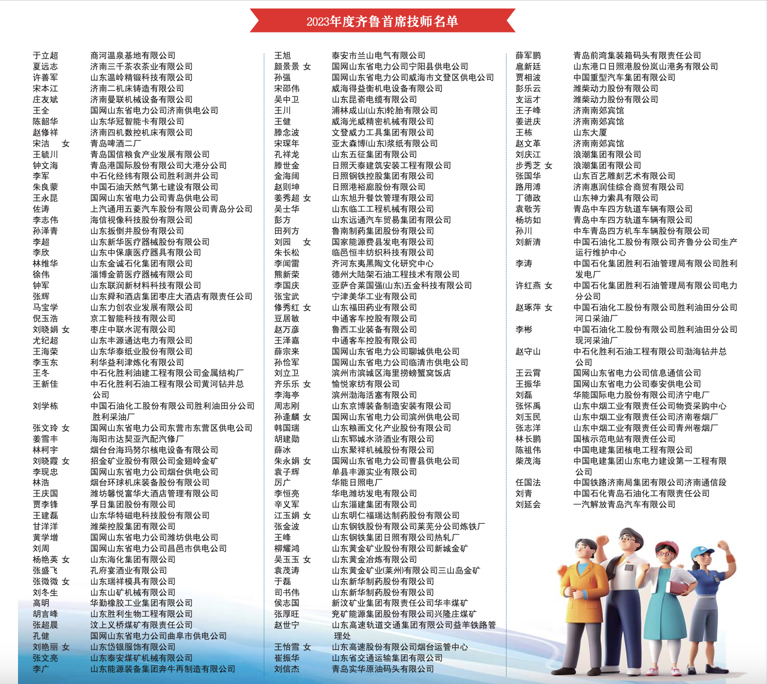 附名单!146名企业一线技能人才获评2023年度齐鲁首席技师