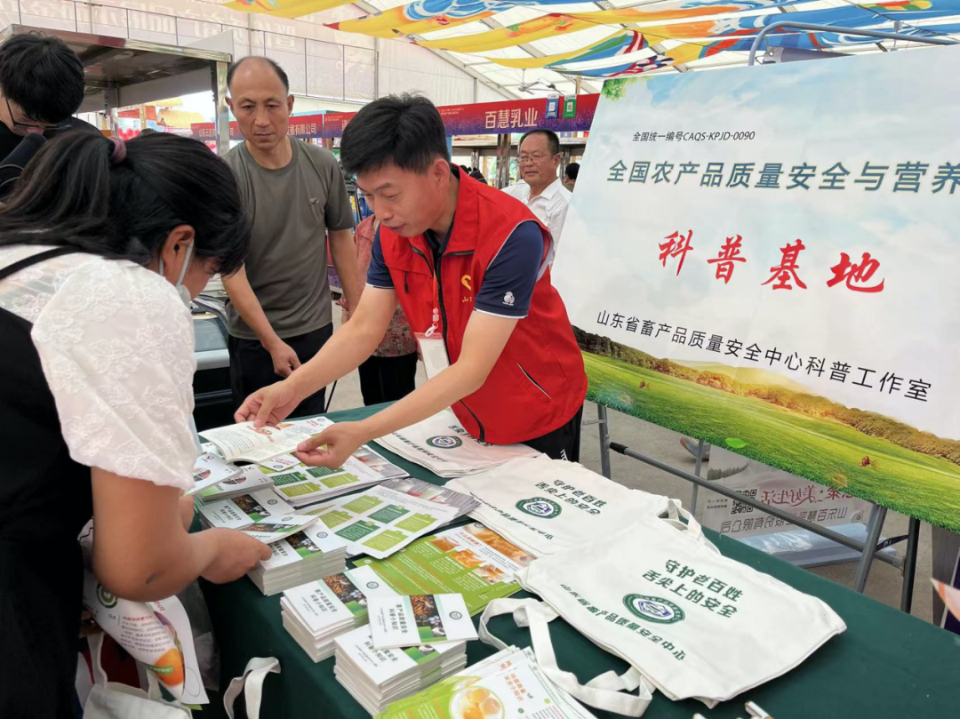 活动现场省畜产品质量安全中心志愿者免费发放畜产品安全知识明白纸、科普小册子、优质畜产品消费指南、手提袋等科普资料,与广大消费者互动交流,图文并茂地宣讲畜产品质量安全知识,针对畜产品质量常识进行答疑解惑。同时开展了《农产品质量安全法》普法宣传工作,加强“鲁畜优品”区域公用品牌培育和宣传推介,擦亮山东省优质畜产品金字招牌,守护老百姓舌尖上的安全。