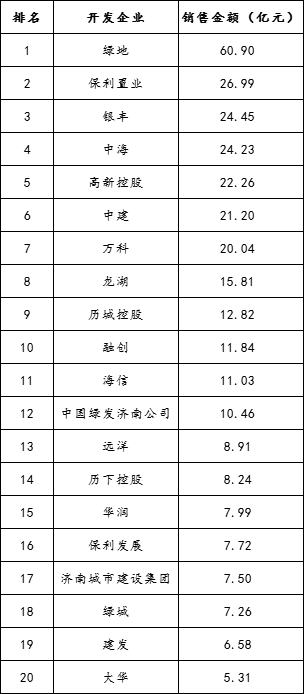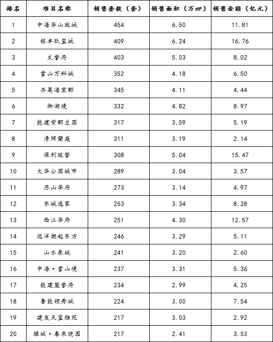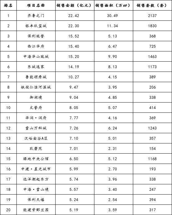 2024年上半年济南房地产市场销售排行榜