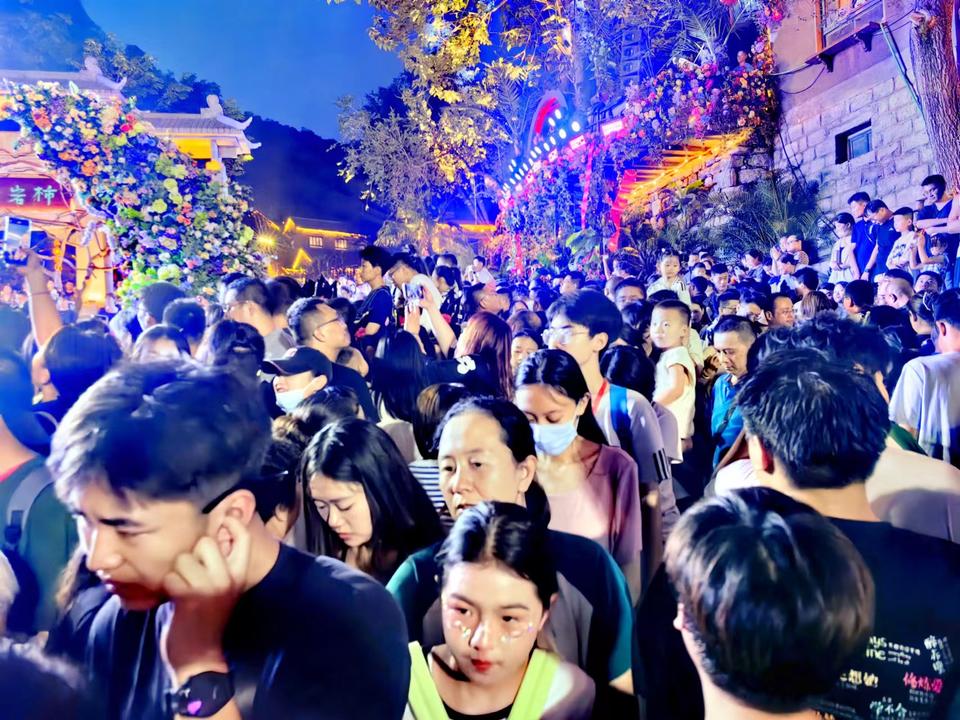一夜龙灯舞,万种烟火情。7月13日,一场非遗游龙舞·2024红叶柿岩巅峰之夜活动在该旅游区启幕,正式开启山东文旅红叶柿岩旅游区从白天到黑夜狂欢的时刻。记者当晚在该景区看到,迷人的鲁中夜色笼罩下,大量工作下班或刚用完晚餐的当地居民、外地游客,潮水般地向景区东大门、南门汇集,停车场为之紧张。相比记者近日在很多山岳型景区的见闻,红叶柿岩的游客明显地偏年轻化,使进山路上充满青春朝气。景区为启动夜游做了充分的准备,新布置很多网红打卡点,吸引大家纷纷驻足,拍照打卡。利用山势地形,设立若干连点成线的休闲点,游客可就地休憩、唱歌、冷餐、吃烧烤,体验“山谷爆裂电音”以及“乐动弦音·民乐合奏”的魅力。