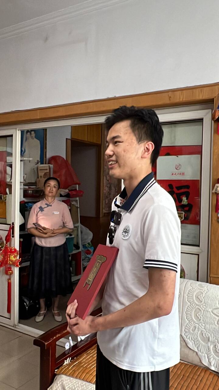 14时20分,杨尚霖从邮递员手中接过北京大学录取通知书,当得知自己是今年潍坊第一封北大录取通知书“签收者”时,杨尚霖表示非常激动非常荣幸,同时也十分开心能被心仪的大学录取。这是对自己三年高中文化课学习和信息学竞赛付出努力的回报,也感谢父母、老师们三年来对自己的支持和帮助。据悉,今年8月19日,杨尚霖将正式入学报到。