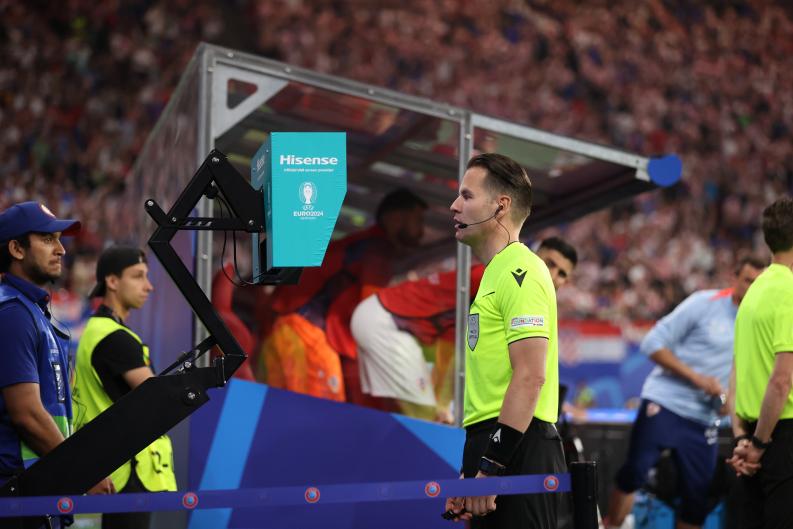 根据欧足联官方数据显示,小组赛期间共有20次VAR介入,其中8次是场上裁判观看回放,12次是VAR直接审查。本届欧洲杯VAR判罚平均时间为51秒,比欧冠快了5秒。在整个欧洲杯赛事期间,海信显示产品助力裁判精准判罚和 VAR速度提升。