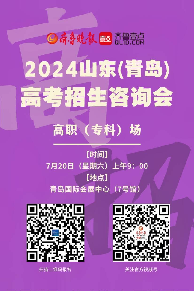 青岛高职专科场高招会坚持公益性,考生提前预约(预约地址:https://h.eqxiu.com/s/FADCmPsQ?eip=true),现场免费参加,也可扫描二维码报名预约。考生和家长也可关注“齐鲁晚报青岛融媒”视频号,联系客服回复“2024青岛高招会”,获取参加高招会方式。