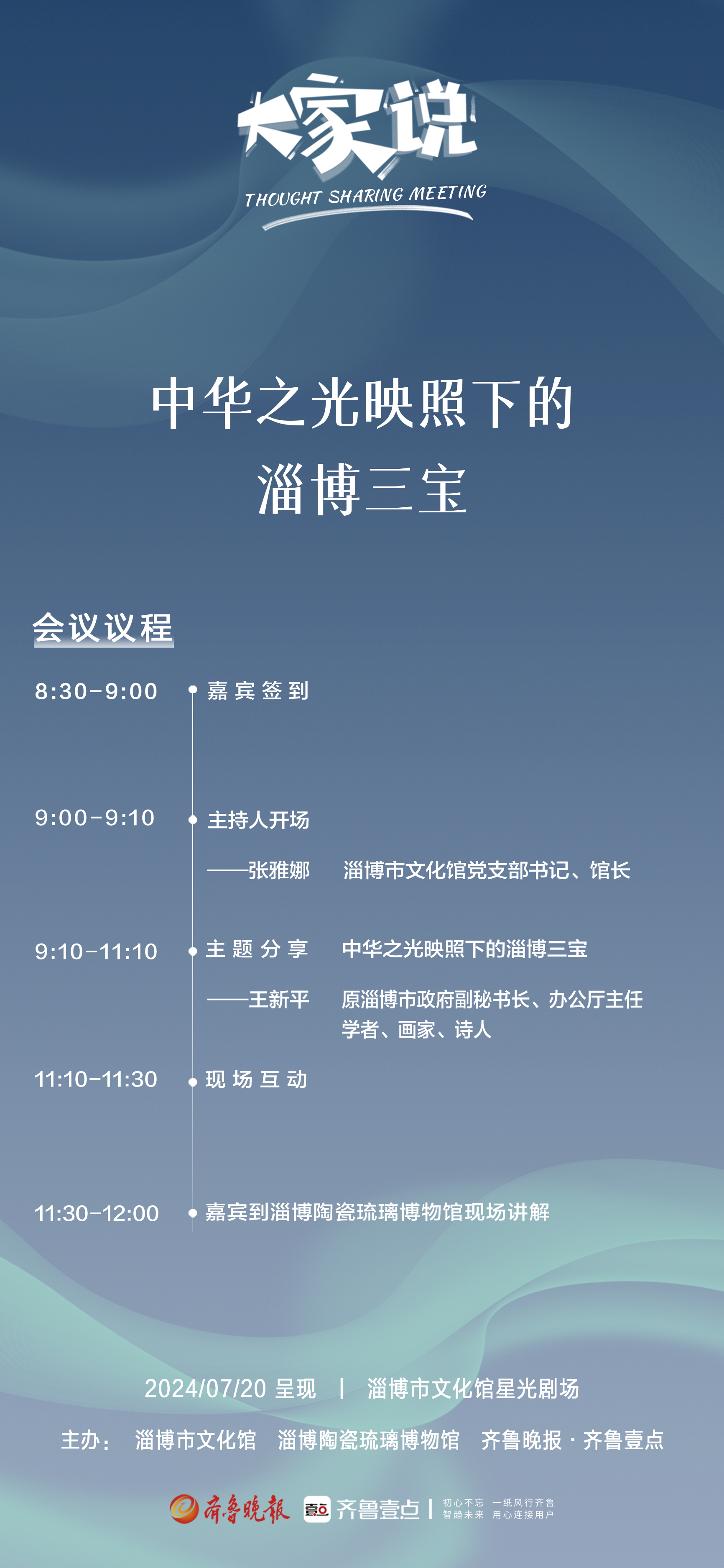 我们将以一场场“大家说”式的演讲讨论,在文化“大咖”干货满满的讲述中,将淄博文化精髓流入“大家”的心田。