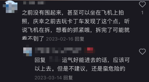 在社交平台上记者也注意到,一些帖子中有网友爬上离地十多米的机头、飞机翅膀上拍照,在没有任何安全防护措施的情况下,这是一种相当危险的行为。