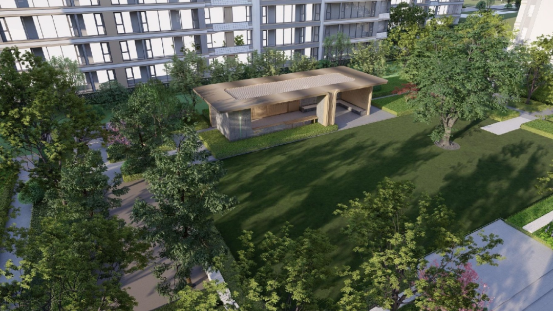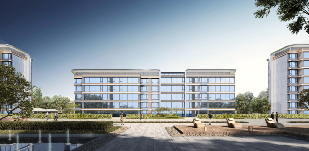 建筑以泉水流动为灵感,屋檐作弧线化处理,同时融合现代审美,南向外立面搭配大面积玻璃和铝板线条元素,成就轻盈灵动韵律,升阶建筑质感。