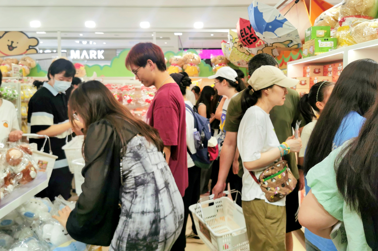 消费者在樱桃小丸子快闪店选购商品。