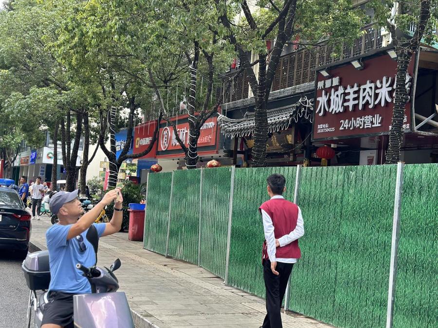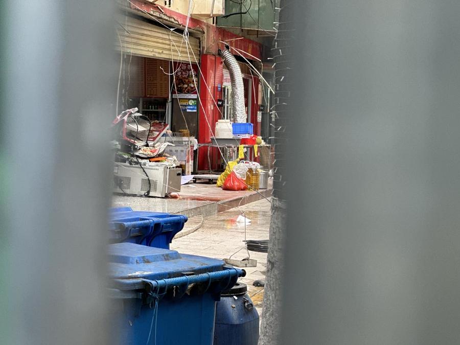 现场:围挡内多家店铺停电停业