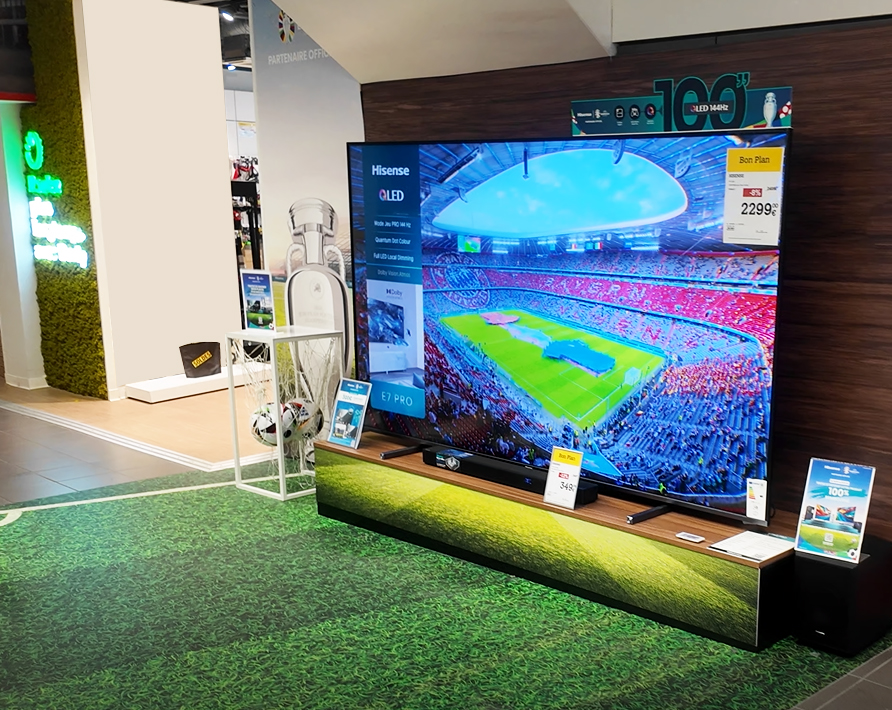 赛场外,来自中国制造的大屏电视深受法国当地消费者的追捧,为当地消费者提供了大屏视听观赛的品质选择。据海信法国公司总经理刘韬介绍,今年1-6月,海信电视在法国市场的销售额同比增长20.8%,其中100寸电视市场份额排名第一,激光电视销售量同比增长87%。