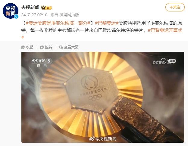 巴黎奥运每一枚奖牌中心都嵌有埃菲尔铁塔铁片 央视新闻 2024-07-27 6970 巴黎奥运奖牌特别选用了埃菲尔铁塔的原铁,每一枚奖牌的中心都嵌有一片来自巴黎埃菲尔铁塔的铁片。 (央视新闻) 责任编辑:彭茜