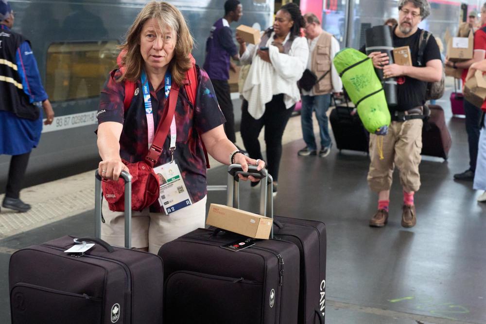 7月26日,一名加拿大奥运代表团成员乘坐延误的列车抵达法国巴黎北站。新华社发