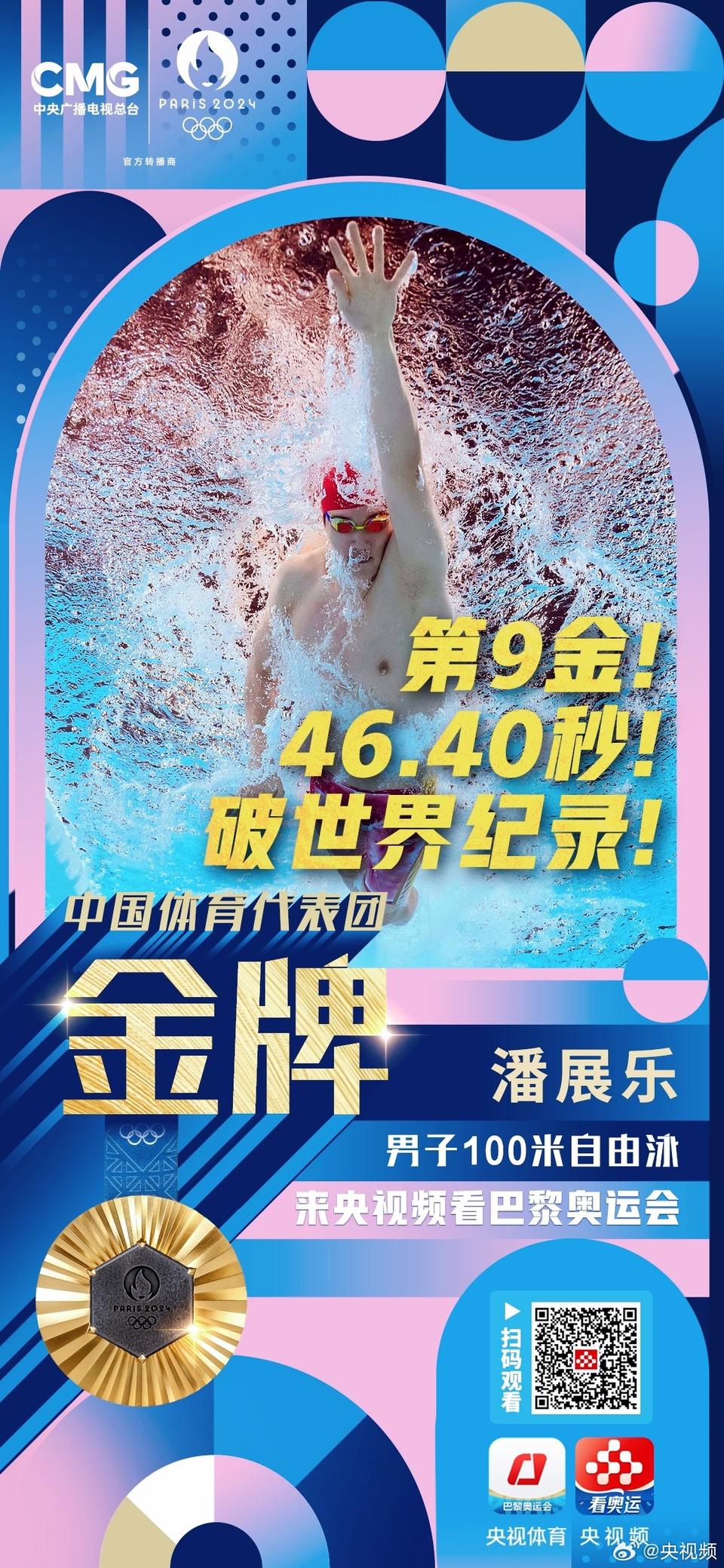 潘展乐夺得了中国代表团在本届奥运会的第9枚金牌。