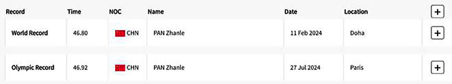在2024年,潘展乐两次打破世界纪录,两次打破奥运会纪录,46秒40,这也是巴黎奥运会游泳比赛的首个世界纪录。