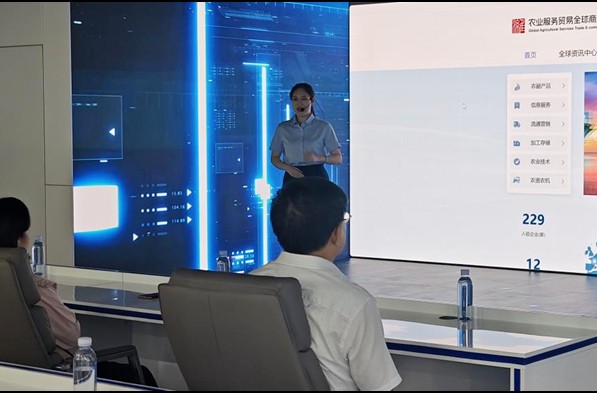 目前全球商通中心建设已取得显著进展。线上信息化平台及线下智能运营中心已基本完成搭建,建设成果已在第三届中国-拉美和加勒比农业部长论坛会议期间获得高质好评,先后接待了商务部及省、市领导的多次参观指导,农业专家对项目的创新模式和实际应用效果表示高度赞赏,该项目对于推动国内外农业服务贸易市场的畅通和发展具有重要意义,为中国农业由大到强增添新质生产力。