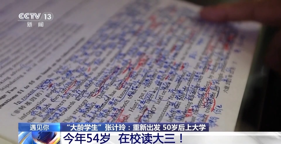张计玲:单词我一直在背,就好像是家常便饭一样了,天天必须背100个单词。有我熟悉的、有我会写的,也有陌生的,但是我必须天天把它过一遍。你觉得年龄大了记不住东西,那是你觉得。真正做了以后,不是事,能拿下来。我上大学的初衷,就是要好好地享受一下这个过程。