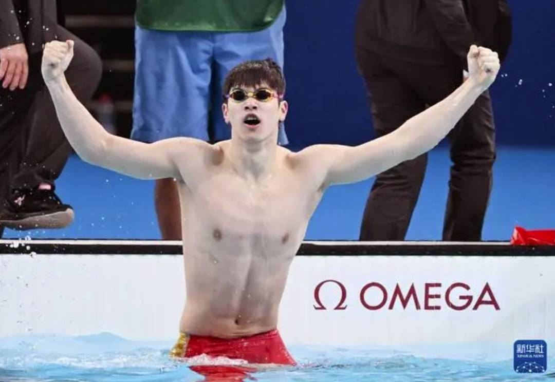 潘展乐此前庆祝夺冠。图据新华社