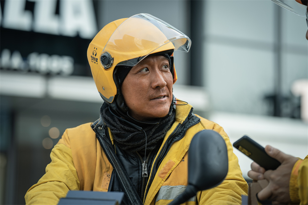 在片中出演外卖员“大黑”的冯兵,延续了他在《狂飙》里“老默”人狠话不多的形象。此前,冯兵曾在上海跑外卖体验生活时被认出,被路人狂喊“我想吃鱼”的小视频在互联网上广为传播。“演员是个被动的职业,但在自己的世界里我们又很主动。去年十月导演给我讲了这个角色后,我就去山东、内蒙古送外卖,后来才知道电影是在上海拍摄,不同的地域文化要求我重新体验生活。我们剧组是一个战斗的集体,能打仗,打胜仗。”