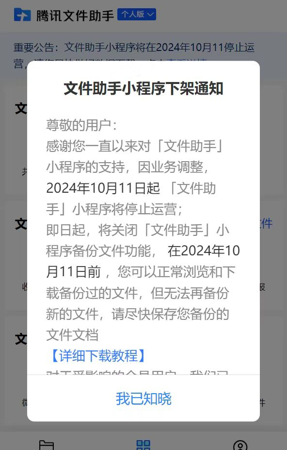 腾讯宣布10月文件助手小程序停止运营:因业务调整