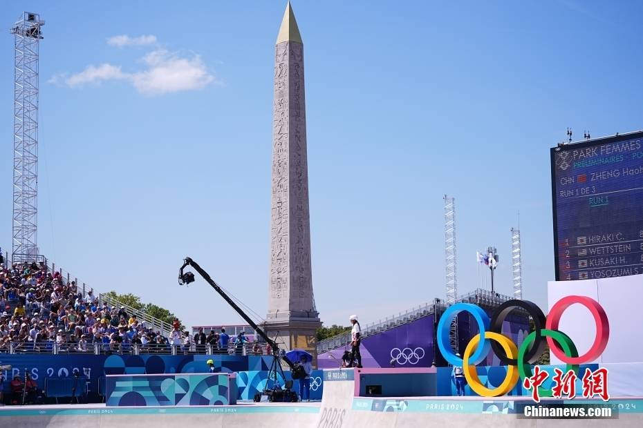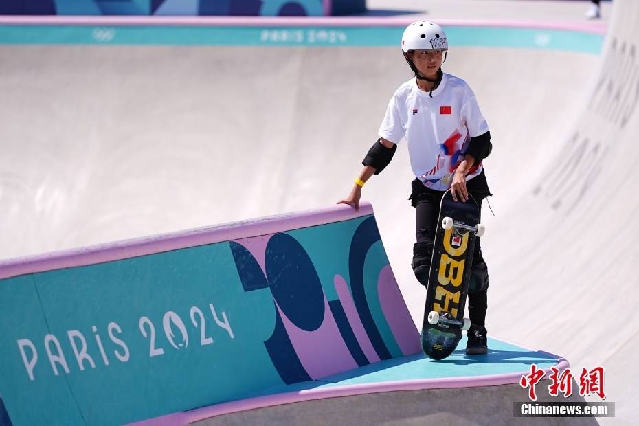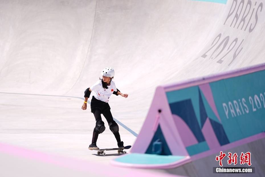 (巴黎奥运)中国代表团最小运动员郑好好亮相滑板女子碗池赛
