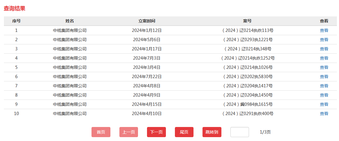 中国执行信息公开网显示,中缆集团有21条被公示的被执行人信息。最近的一次是在2024年7月22日,案号为(2024)辽0202执5830号,中缆集团被执行标的50000000元,执行法院为大连市中山区人民法院。