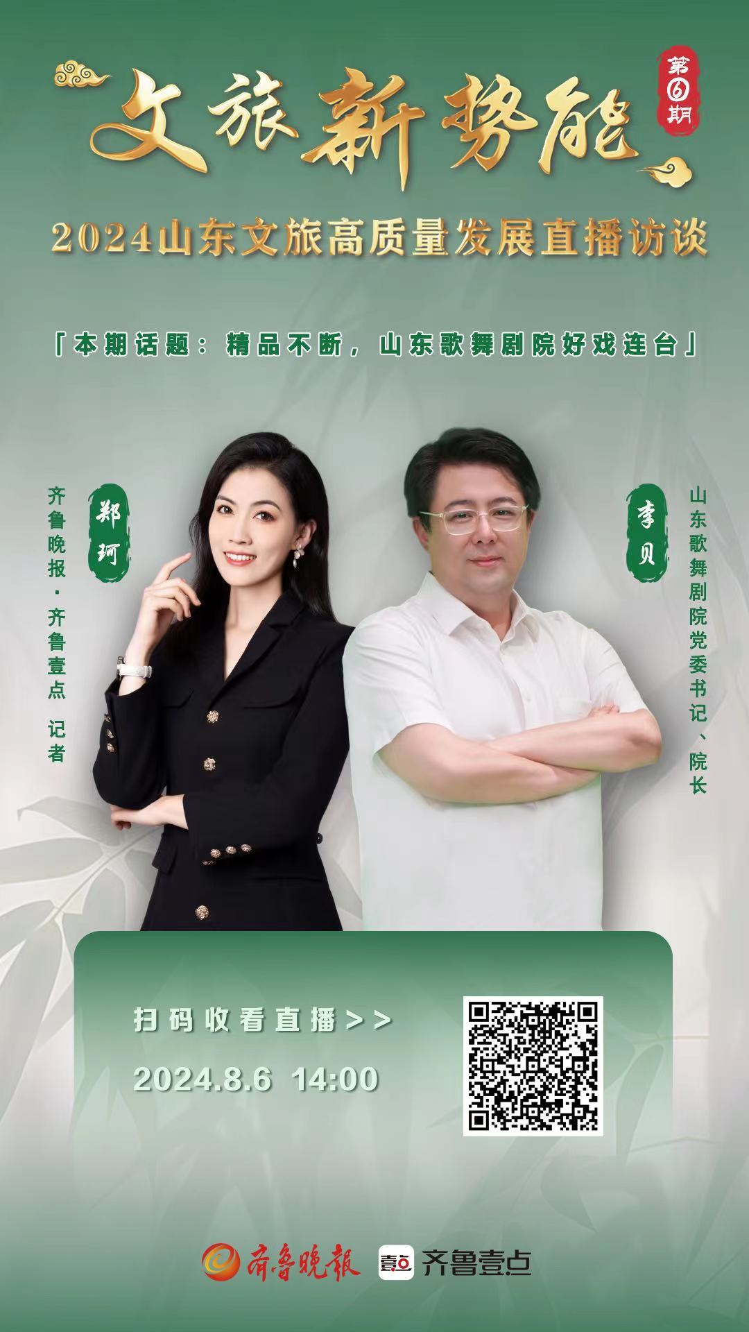 8月6日,山东歌舞剧院党委书记、院长李贝做客2024山东文旅高质量发展直播访谈《文旅新势能》,他从精品创作的角度,分享了近年来山东歌舞剧院勇攀齐鲁文艺高峰的历程。