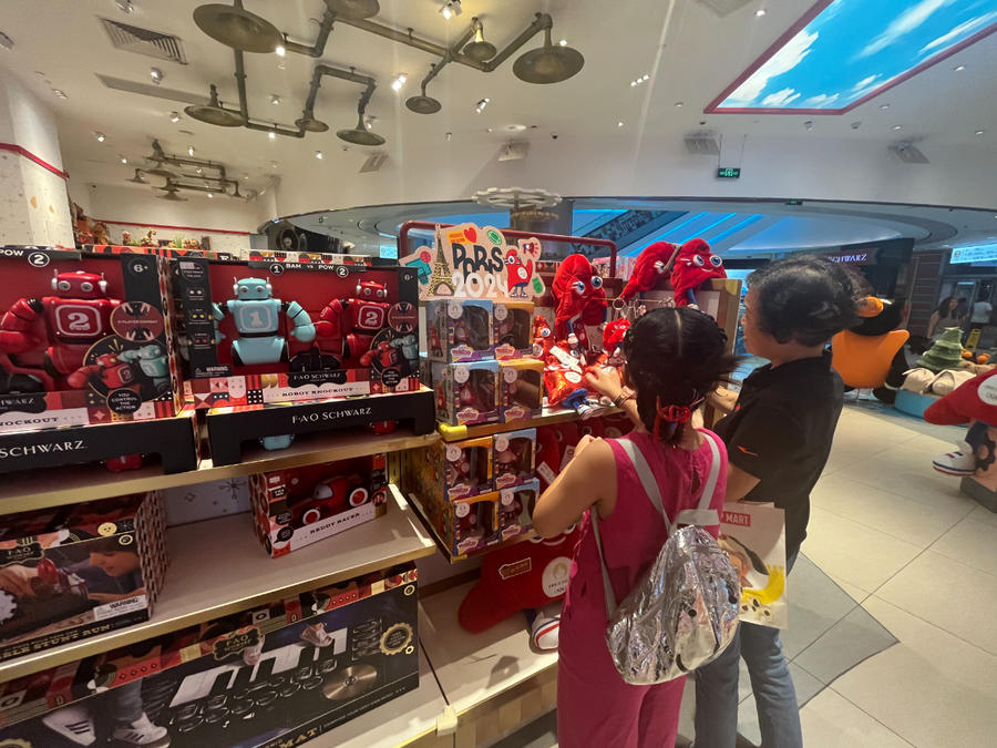 消费者在国贸商城选购2024年巴黎奥运会吉祥物“弗里热”玩偶。(中国商报记者 陈晴/摄)