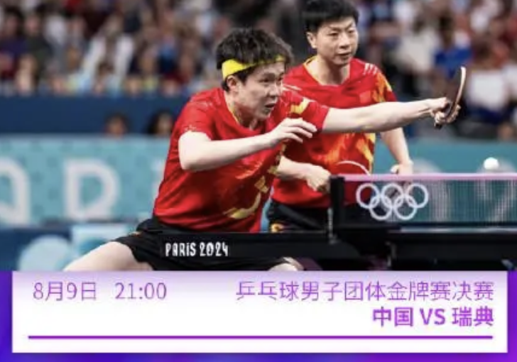 中国队对瑞典队的决赛,将在北京时间8月9日21时举行,如果中国队获胜,将是国乒男团在这个项目上的奥运五连冠。