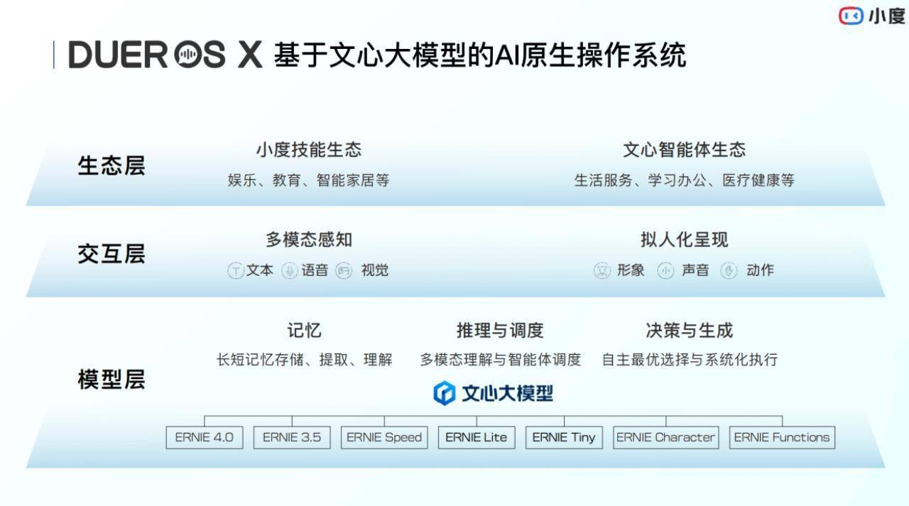 早在今年4月16日,小度发布基于文心大模型的首个AI原生操作系统DuerOS X,目前已在添添AI平板机器人、小度学习机Z30、添添闺蜜机、小度智能屏X9 Pro等产品中实现大模型“换脑”。