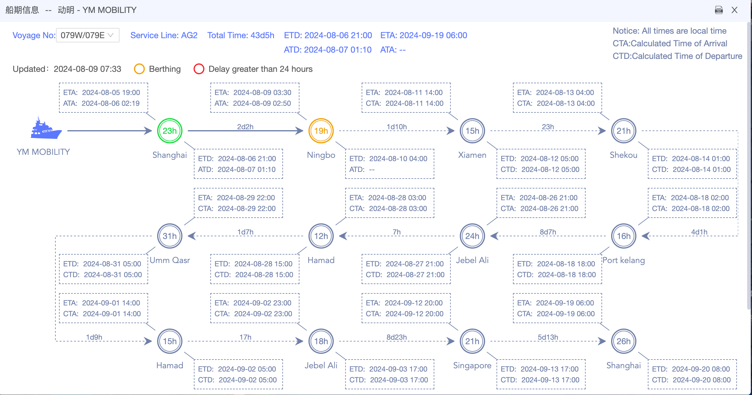 此次阳明海运发布的通告中指出,本艘船舶配置于本公司远东往返中东CGX航线。