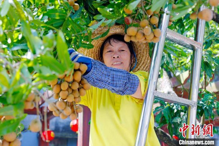 高州农户正在采摘龙眼。程景伟 摄