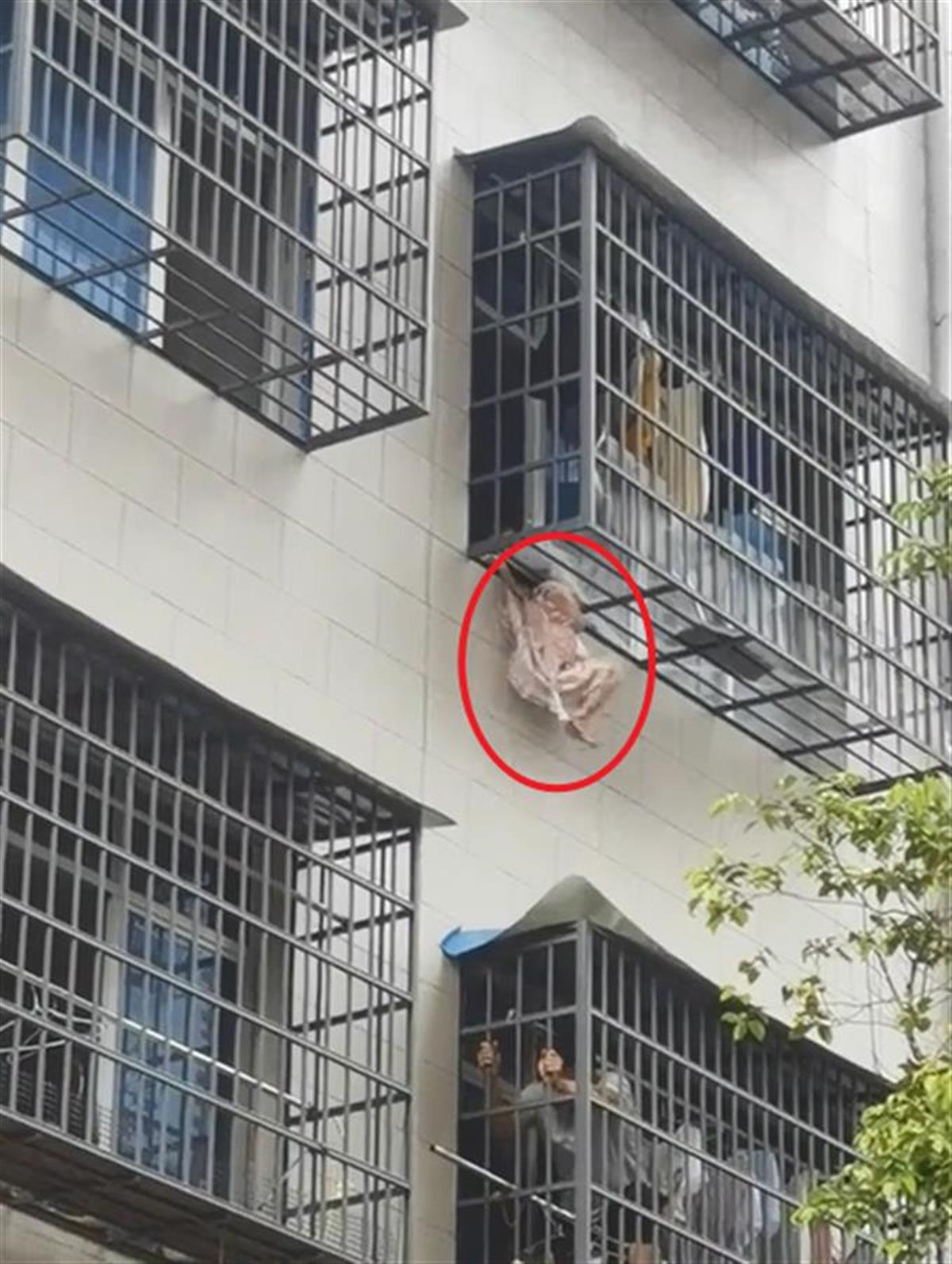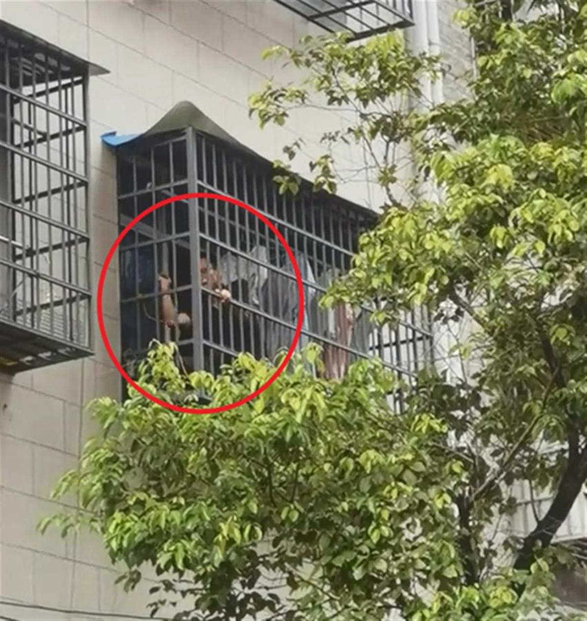 惊心3分钟!广西女童脖子卡在三楼防盗网上,身体悬空挣扎,湖北小伙提刀砍窗救人