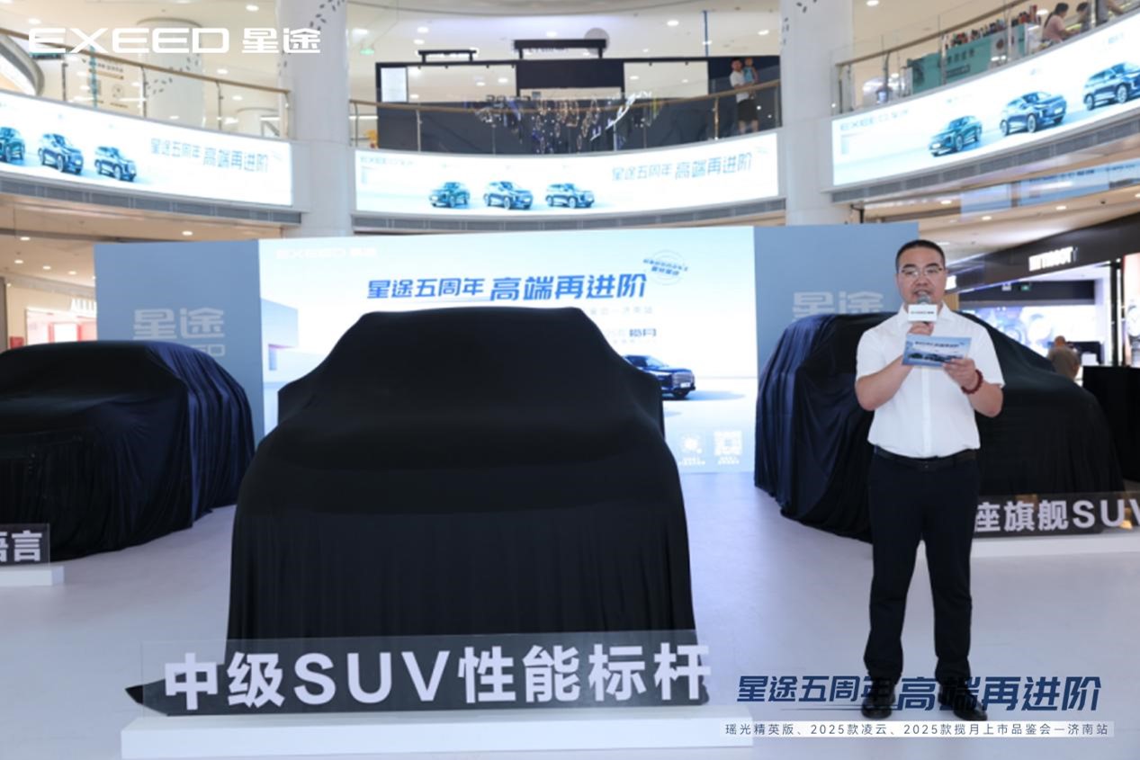 2024年8月10日,济南万虹广场人声鼎沸,奇瑞高端品牌EXEED星途在此隆重举办了全新一代瑶光、凌云及揽月三款车型的盛大上市会。活动现场星光熠熠,三款新车惊艳亮相,吸引了众多消费者与媒体的热烈关注。精致的展台设计、详尽的车型介绍,以及充满科技感的互动体验,共同见证了EXEED星途在智能新能源领域的又一里程碑,预示着品牌在追求卓越与创新的道路上又迈出了坚实的一步。