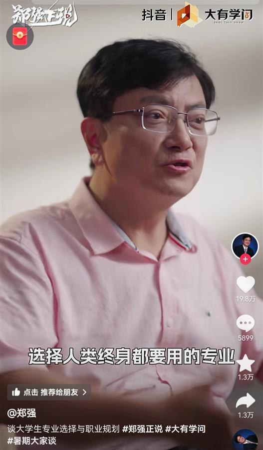 “网红教授”郑强入驻抖音一天涨粉160万,提醒上大学要选“人类终身都要用的专业”