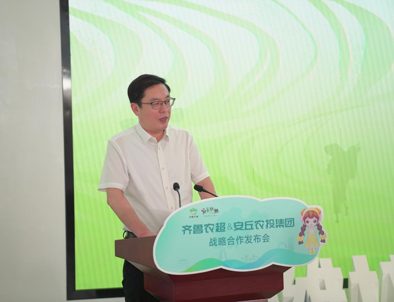 在此次战略发布会上,安丘市委副书记、市长乔日升发表致辞。他提到,此次安丘市与“齐鲁农超”的战略合作发布会,标志着双方合作进入了新阶段。“我们衷心希望,‘齐鲁农超’充分发挥平台优势,继续助力安丘优质农产品对接高端消费市场,进一步提升安丘农产品的知名度和影响力。”乔日升表示,未来将始终为“齐鲁农超”在安丘的发展提供更加优质、更加高效、更加便捷的服务。