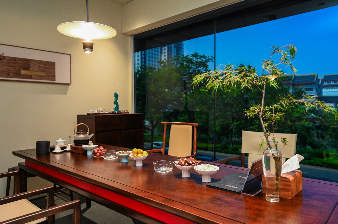 如小罐茶临沂市兰山区涑河北街店,以双层设计,打造了近600平的雅致空间,精心划分产品展示、品茗体验、休闲棋牌、专属茶室等多个功能区,其中仅茶室就设置了7个,多种设计组合,既能满足3-5人的朋友小聚,也能提供5-8人的商业会谈空间,还能匹配7-10人的茶话会活动等。此外,因为双层临街设计,一楼后方还附带精致小院,秋高气爽,闲坐檐下,静看云卷云舒,给人带来别样的品茗体验;而不同于一楼,坐在二楼临街茶室,当夜幕降临,映入眼帘的是灯光璀璨与车水马龙交织的城市夜景,宁静中又融入繁华,为临沂市民打造新式茶饮生活。