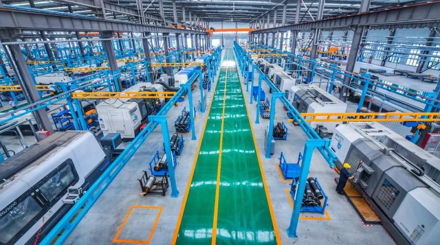 在国家“双碳”战略下,海纳科技围绕能源领域装备制造产业,以绿色发展理念延伸产业链条,聚焦能源领域绿色化、节能化的发展需求,布局高端化、智能化、绿色化的矿山装备产业矩阵,跑出“绿色低碳智能制造”高质量发展的加速度。立足于绿色矿山装备制造产业,海纳科技不断优化资源利用率,大力开展数字化改造,通过车间MES系统,实现全自动盘套生产线、AGV智能搬运机器人、托辊全自动生产线、焊接全自动生产线、多轴机器人工作站等智能设备在线管理可视化,大幅提升生产自动化与智能化水平,同时营造出更加安全、健康、绿色的工作环境。