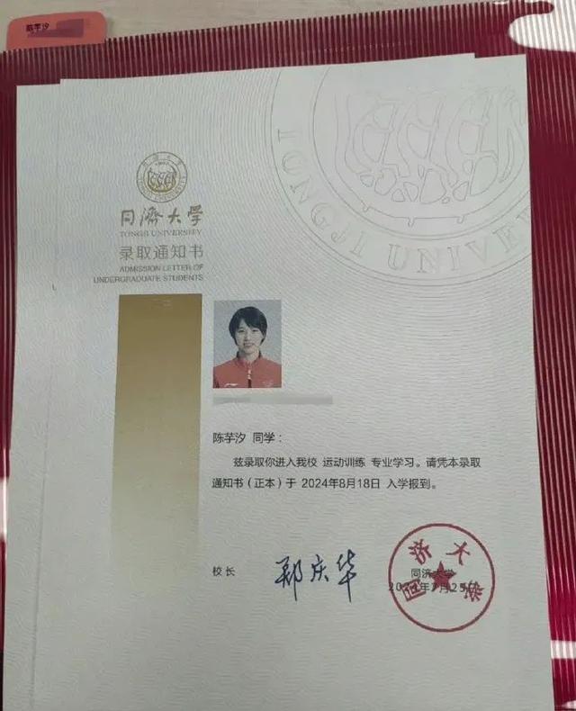 今年3月份,同济大学官方发布了2024年保送录取优秀运动员综合考核合格考生名单,跳水运动员陈芋汐在列,专业均为运动训练专业。