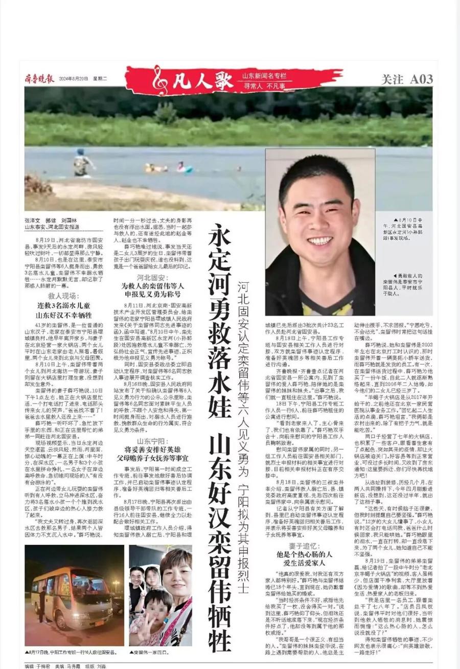 8月20日,齐鲁晚报对栾留伟救人事件进行报道。