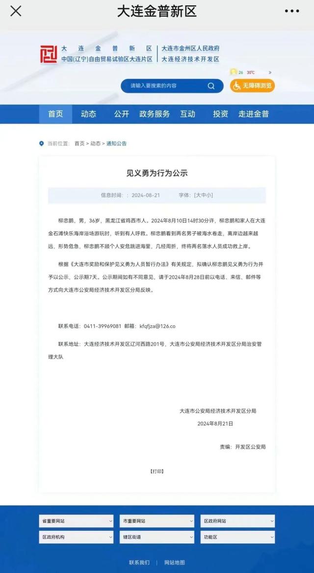 获救父子现身!大连海滩救人大哥柳忠鹏申报见义勇为,进入网上公示
