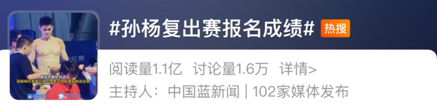 门票售罄!孙杨今日复出首秀,报项成绩冲上热搜