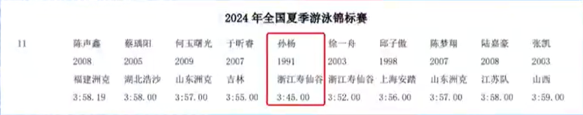 记者从最新的秩序册看到,孙杨的报项成绩为3分45秒。