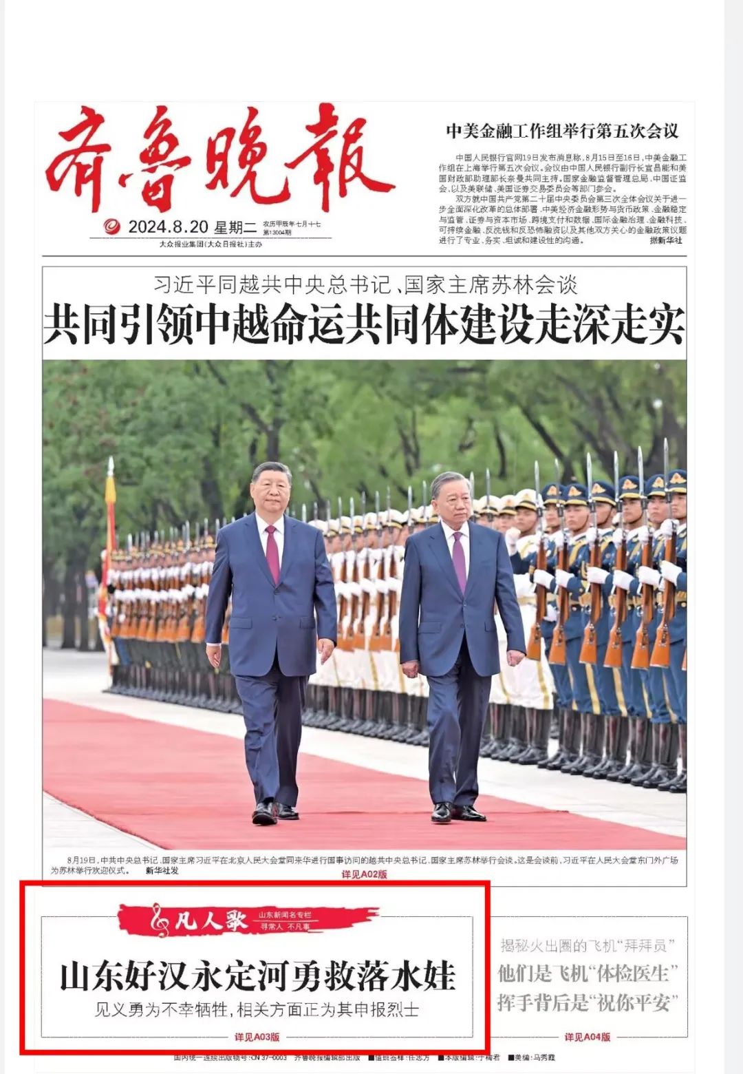 8月20日,齐鲁晚报对栾留伟救人事件进行报道。